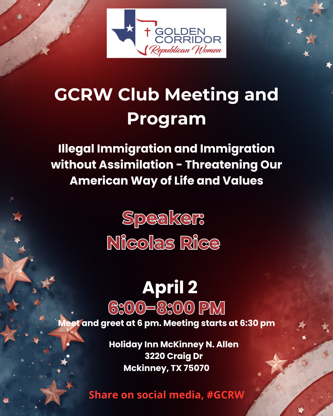 Our February general meeting included a fun candidate speed dating event co-hosted by Plano Republican Women, Conner Harrington Republican Women and Republican Women of Greater North Texas.